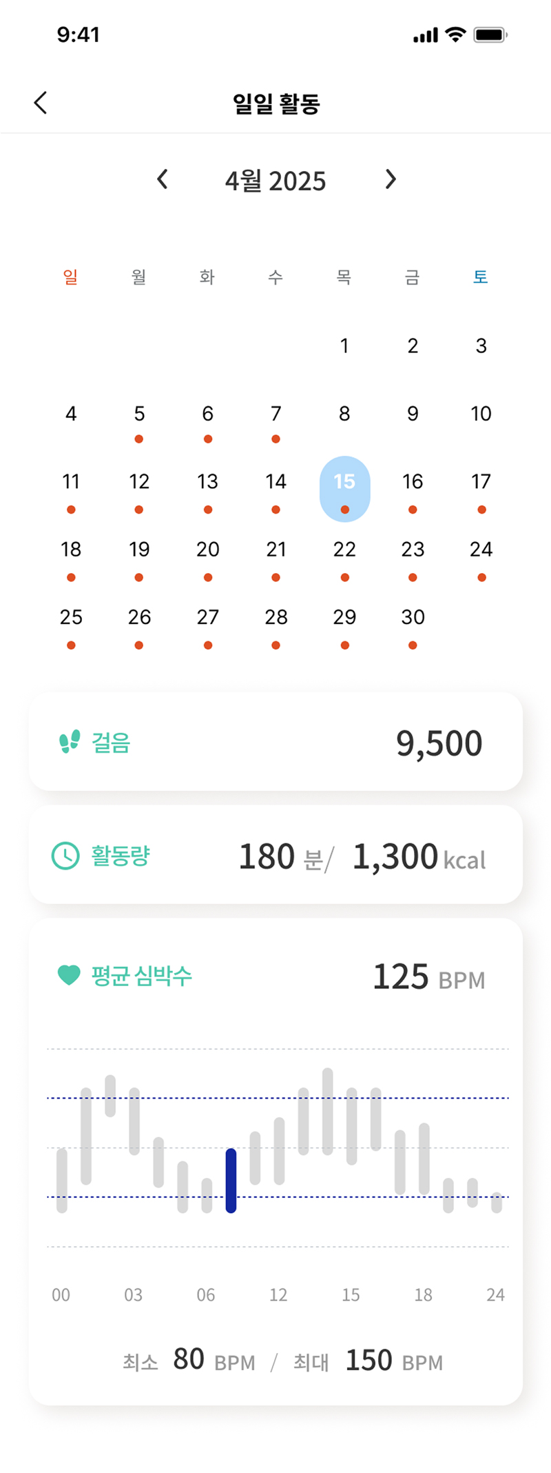 실시간으로 건강 데이터를 수집하고 분석합니다.
