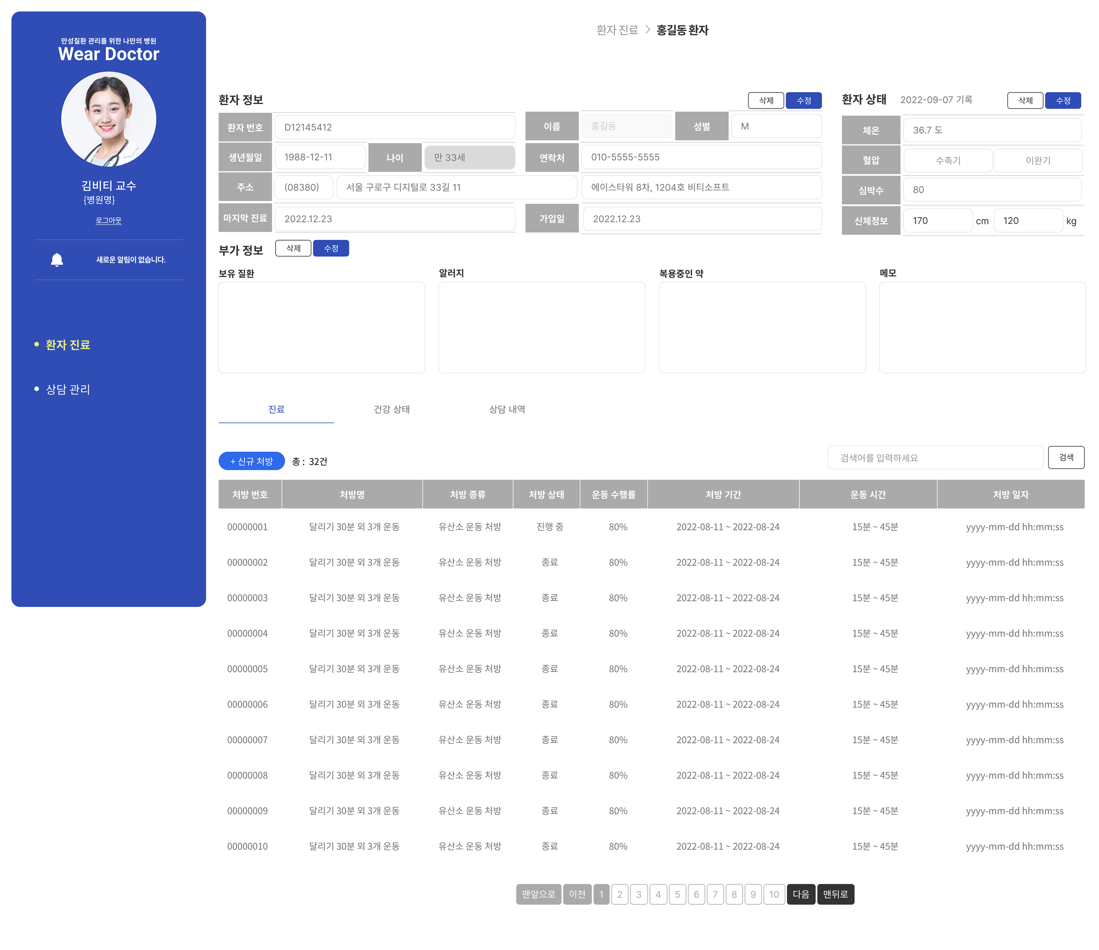 진료, 운동 처방, 건강 모니터링, 전문가 상담 등을 제공하여